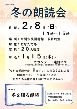 「なかま朗読の会 朗めぐり」のみなさんによる朗読会です。